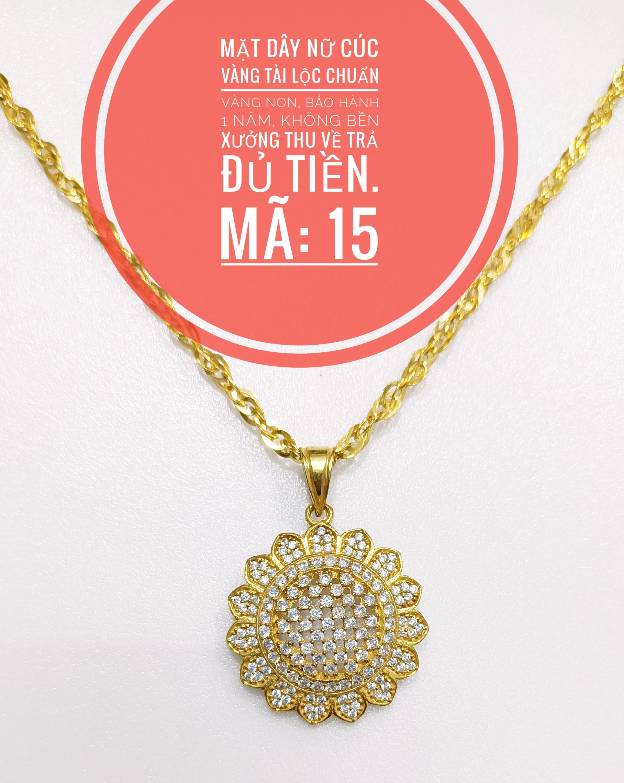 Mặt dây hoa cúc vàng tài lộc_ Mã 15